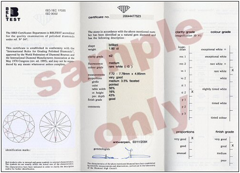 HRD grades each diamond's proportions, polish and symmetry. The polish describes the finish of the facets, while the proportions determine the brilliancy and the fire of the diamond. The symmetry describes the variations of the different parameters that define the proportions. Each grade is divided into 4 categories: Excellent, Very Good, Good and Fair.