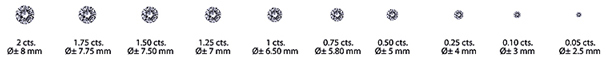 It is important to note that diamonds of the same weight don't necessarily have the same size appearance. Those cut too shallow or deep may look small for their weight, or suffer in brilliance. IGI recommends the diamond size chart below to use as a guide for diamond size.